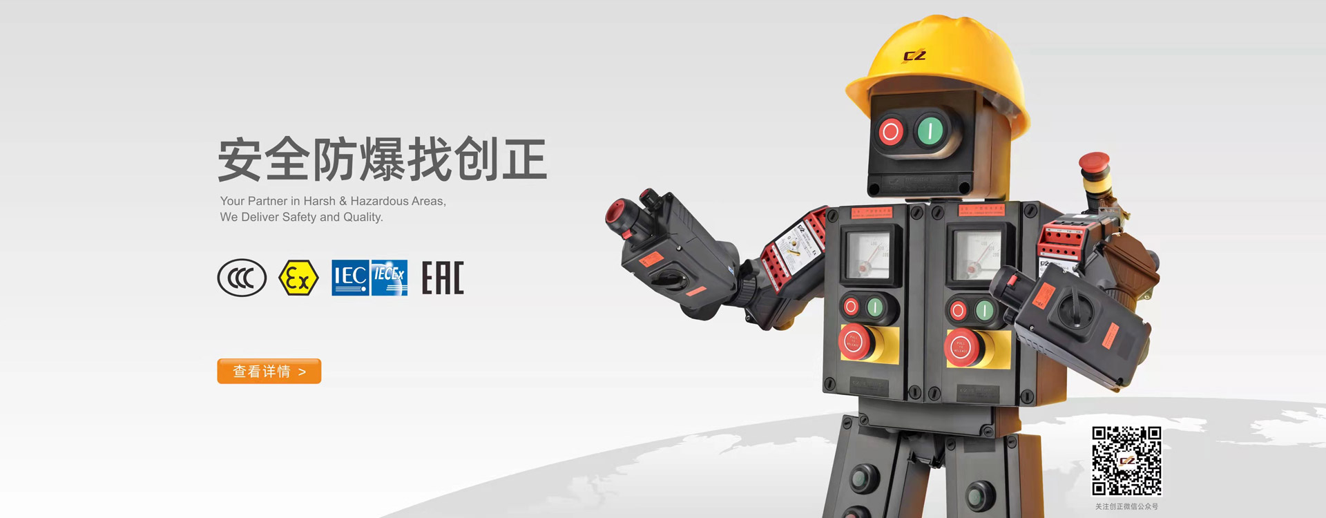 創(chuàng)正電氣股份有限公司系國家高新技術企業,座落于長三角城市嘉興市,是一家以安全為核心的防爆解決方案提供商。公司擁有自營出口權,是中國石油天然集團公司一級供應網絡成員,中國石化物資資源市場成員單位和中國海洋石油工程供應商。產品涵蓋了從防爆元件到電控系統集成的完整系列,實現了從單一產品供應商到全面技術方案解決商邁進。